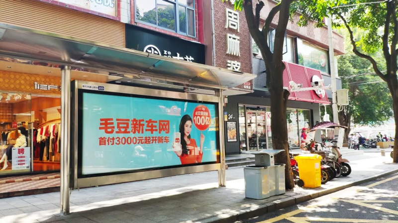 年輕一代有購(gòu)車(chē)需求的受眾們,每日都能在城市出行中必定要長(zhǎng)時(shí)間停靠的候車(chē)亭中,通過(guò)大面積的畫(huà)面刺激及重復(fù)接觸,將毛豆新車(chē)網(wǎng)品牌植入人心。